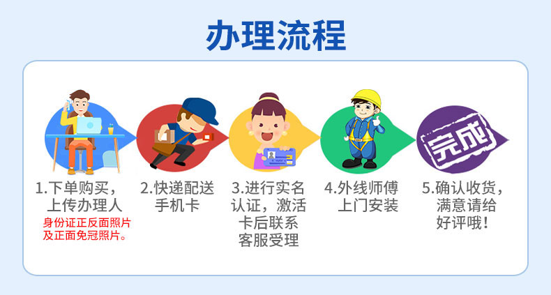 2 .快递配送上传办理人手机卡身份证正反面照片及正面免冠照片。